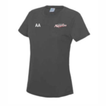 Charcoal T-shirt with printed initials, community coach back print and printed badge